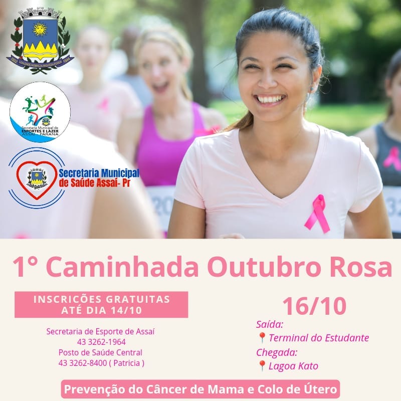 Como ação da Campanha de Prevenção ao Câncer de Colo de Útero e Câncer de Mama, o Governo Municipal através da Secretarias de Esporte e de Saúde realizará a 1ª Caminhada Outubro Rosa no dia 16 de Outubro de 2022.