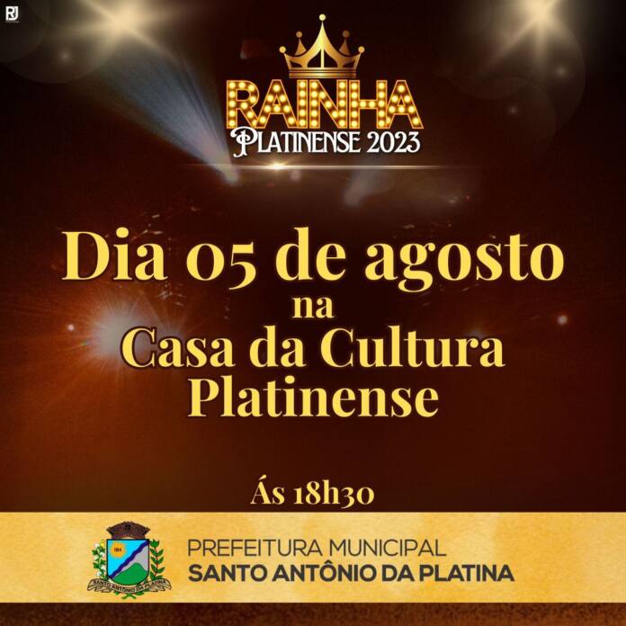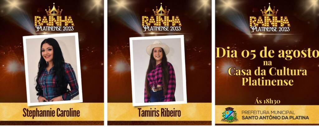 Foi divulgado nas redes sociais oficiais do concurso nesta quarta-feira, 12, os nomes e fotos das 26 candidatas que disputam o título de “Rainha Platinense 2023”. O concurso é realizado pela prefeitura municipal de Santo Antônio da Platina e tem como objetivo eleger a representante da cidade em eventos, feiras, concursos e durante as comemorações do aniversário do município durante a 51° Efapi Expo.