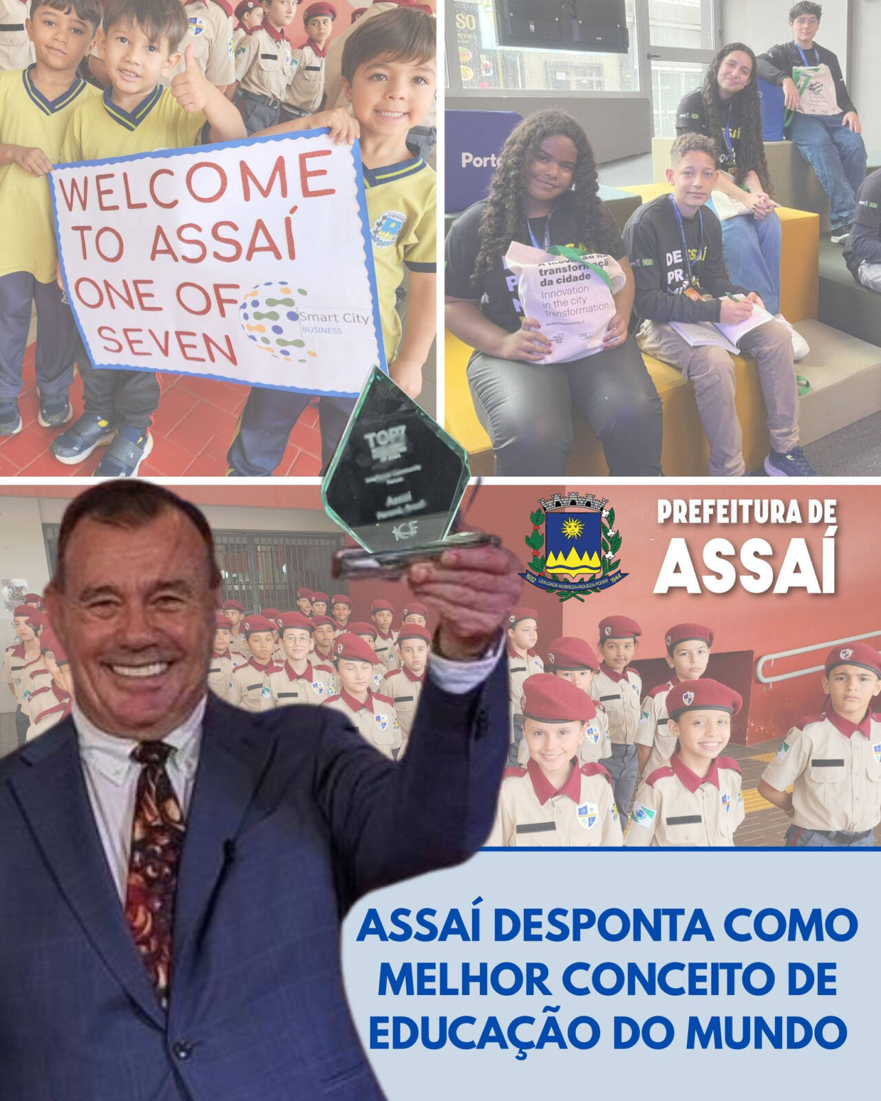 Assaí rompe fronteiras. Assaí rompe preconceitos. Assaí vem dando um grande exemplo de gestão pública, atingindo neste mês o maior feito: ficar em 2° lugar, como melhor conceito de comunidade inteligente do mundo! Atrás apenas de Durham (Canadá), uma Região de 700 mil habitantes, detentora de uma das melhores educação básica do mundo. Isso leva Assaí para a Melhor Comunidade Inteligente, abaixo de 700 mil habitantes; Melhor cidade da América Latina! É uma luz para o futuro de todas as famílias assaienses, que podem entender esta vitória, como uma luz de oportunidades para a cidade.