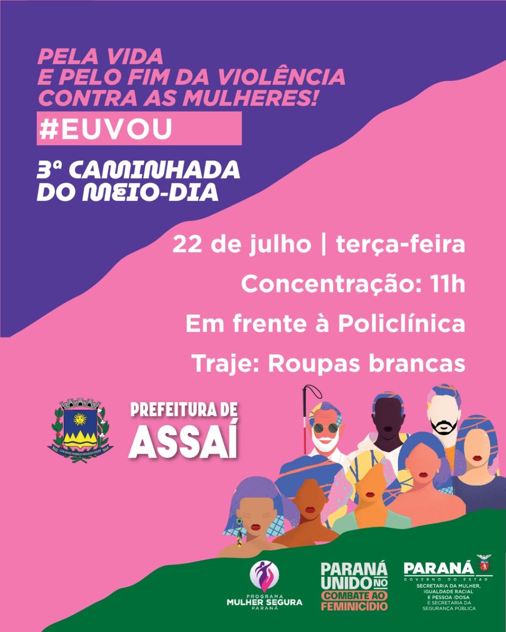 No próximo dia 22 de julho, o município de Assaí se une ao movimento estadual em defesa da vida das mulheres e contra todas as formas de violência de gênero.