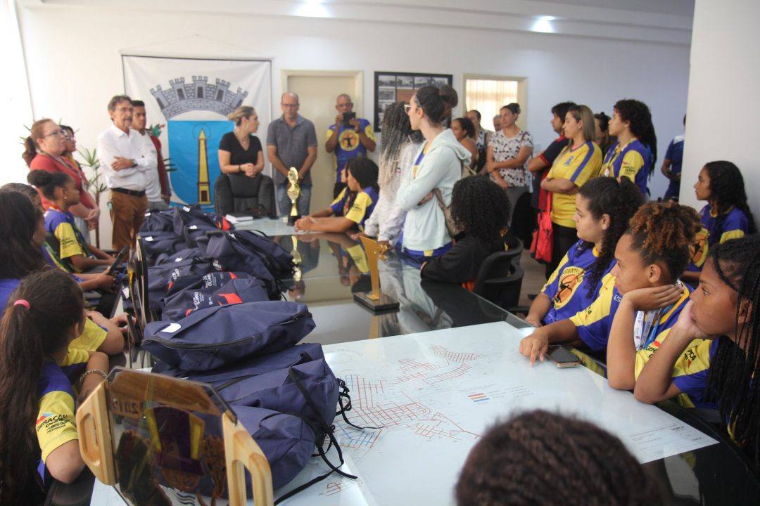 Os atletas foram recepcionados no gabinete da prefeitura de Cornélio Procópio, e receberam kits esportivos