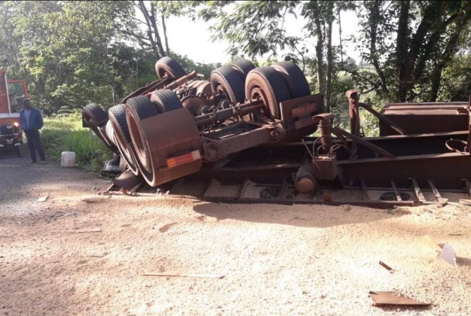 Um caminhão, com placas de Ribeirão do Pinhal, tombou no km 122 da BR-153, próximo a curva da pedreira em Ibaiti. O acidente foi registrado por volta das 6 horas da manhã desta última terça-feira (3).