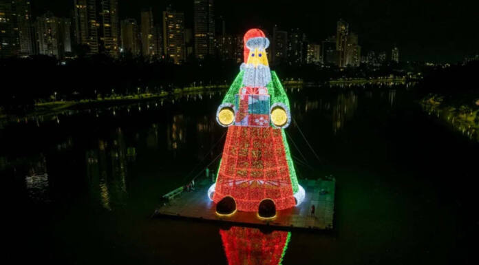 Com cerca de 450 mil lâmpadas de LED decorativas e pesando 15 toneladas, o Papai Noel será avaliado por uma comissão julgadora do Guinness World, o livro dos recordes, que estará presente no Lago Igapó 2 na sexta-feira (5)...