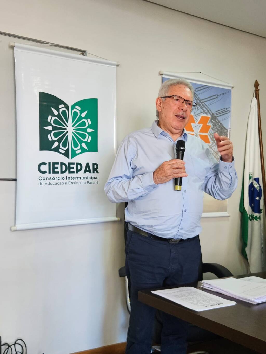 O Ciedepar (Consórcio Intermunicipal de Educação e Ensino do Paraná) elegeu hoje, em Curitiba, sua nova Diretoria para o biênio 2025/2026. A chapa eleita e empossada – intitulada “Educação Unida” – tem como presidente o prefeito de Nova Cantu, Airton Agnolin, e como vice-presidente o prefeito de Cândido de Abreu, Renan Romanichen. Airton substitui o presidente da AMP (Associação dos Municípios do Paraná) e secretário-geral da CNM (Confederação Nacional de Municípios), Edimar Santos, que encerrou seu mandato como prefeito de Santa Cecília do Pavão em 1º de janeiro.