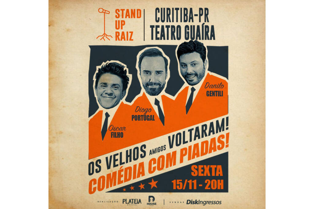 Em 2020, eles uniram forças e criaram o show “Stand Up Raiz”, com a proposta de resgatar o estilo das tradicionais noites de comédia que têm apenas um objetivo: fazer o público dar muita risada. Desde então, o espetáculo está em cartaz em São Paulo, com apresentações semanais. O trio resolveu rodar o país com o show e Curitiba não ficou fora da turnê.