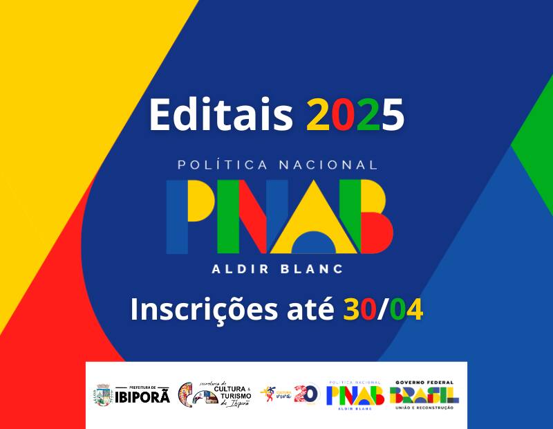 A Prefeitura Municipal de Ibiporã, por meio da Secretaria Municipal de Cultura e Turismo (SMCT), está com inscrições abertas para três editais de chamamento público voltados ao desenvolvimento da REDE MUNICIPAL DE PONTOS E PONTÕES DE CULTURA por meio da Política Nacional de Cultura Viva (PNCV), e subsídios a espaços artísticos e ambientes culturais, objetivando a implementação da Política Nacional Aldir Blanc de Fomento à Cultura (PNAB).