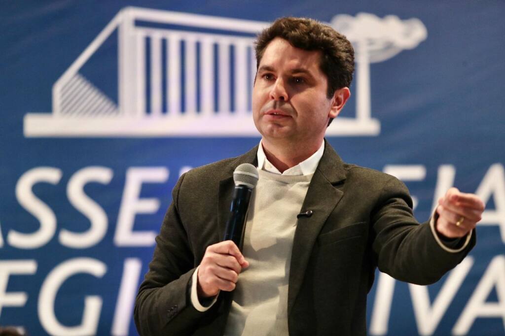 O deputado Alexandre Curi (PSD), presidente da Assembleia Legislativa do Paraná, destacou na noite de quinta-feira (6), durante sessão especial da Assembleia Itinerante, em Campo Mourão, que o Legislativo estadual está cada vez mais próximo da população. Segundo ele, a proximidade com a sociedade é fundamental para o fortalecimento da democracia participativa e para que a política esteja alinhada aos reais interesses das pessoas.