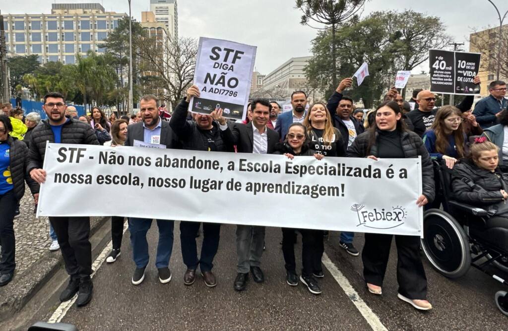 O deputado Alexandre Curi (PSD), presidente da Assembleia Legislativa do Paraná, participou nesta quarta-feira (20) da Caminhada em Defesa das Escolas Especializadas e reforçou o pedido para que o Supremo Tribunal Federal (STF) rejeite a Ação Direta de Inconstitucionalidade (ADI) 7796, que tenta impedir o repasse de recursos públicos para a educação especial no Estado. Atualmente, cerca de 44 mil pessoas com deficiência são atendidas por essas instituições.