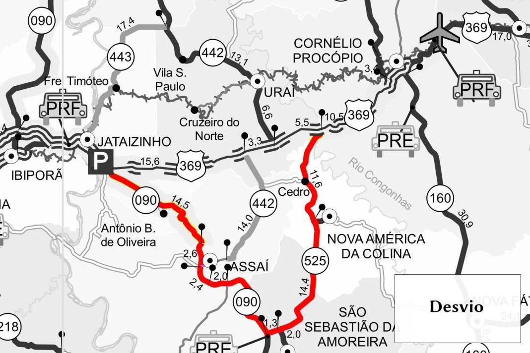 Sentido Londrina – São Paulo: Depois da cidade de Jataizinho, sair pela PR-090 até a cidade de São Sebastião da Amoreira, depois ir pela PR-525 até retornar à BR-369.