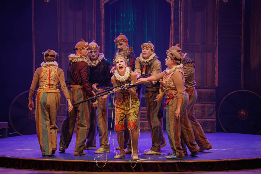 Livremente inspirado no ensaio “Sobre o Teatro de Marionetes”, de Heinrich von Kleist, o espetáculo também dialoga com as gags — esquetes humorísticas do universo circense — e com a peça “Os Gigantes da Montanha”, de Luigi Pirandello. Em cena, os bailarinos transitam entre o humano e o fantasmagórico, incorporando a metáfora das marionetes para refletir sobre a condição existencial do homem.