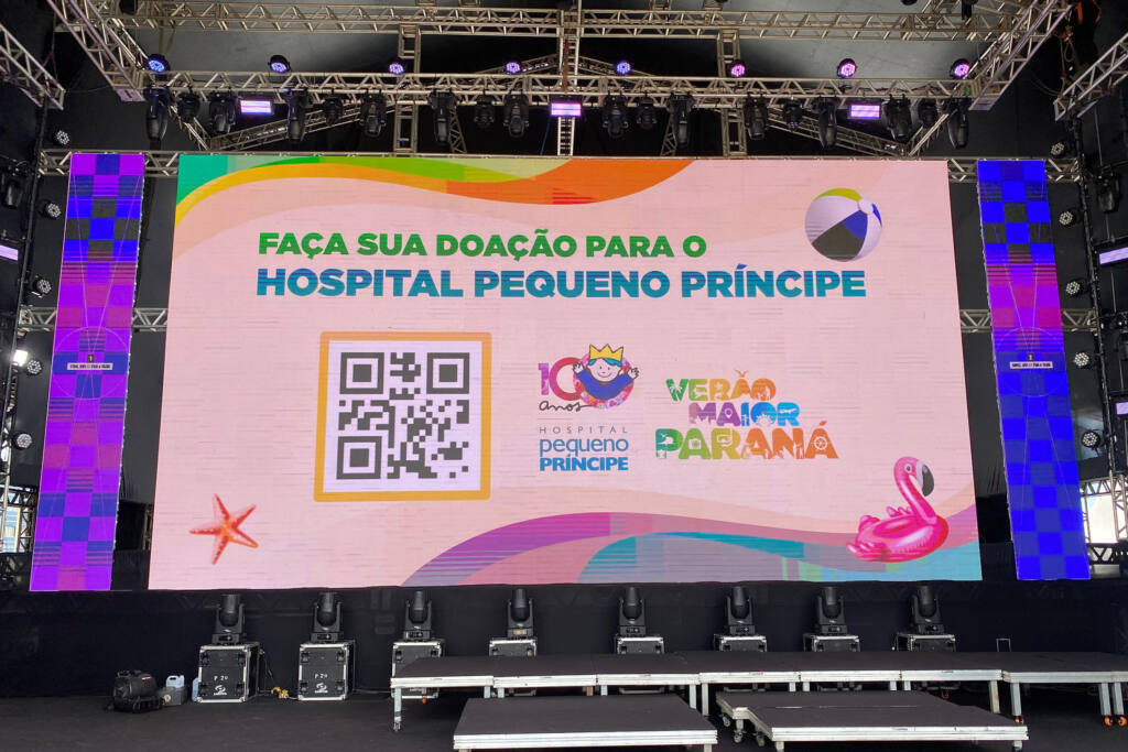 Telões das arenas esportivas montadas nas areias de Guaratuba e Matinhos expõe a chave PIX do HPP, que é o maior e mais completo hospital pediátrico do Brasil. Ao longo do dia, também são exibidos vídeos com orientações aos pais e responsáveis sobre os principais cuidados devem ser tomadas para garantir a saúde das crianças na praia.