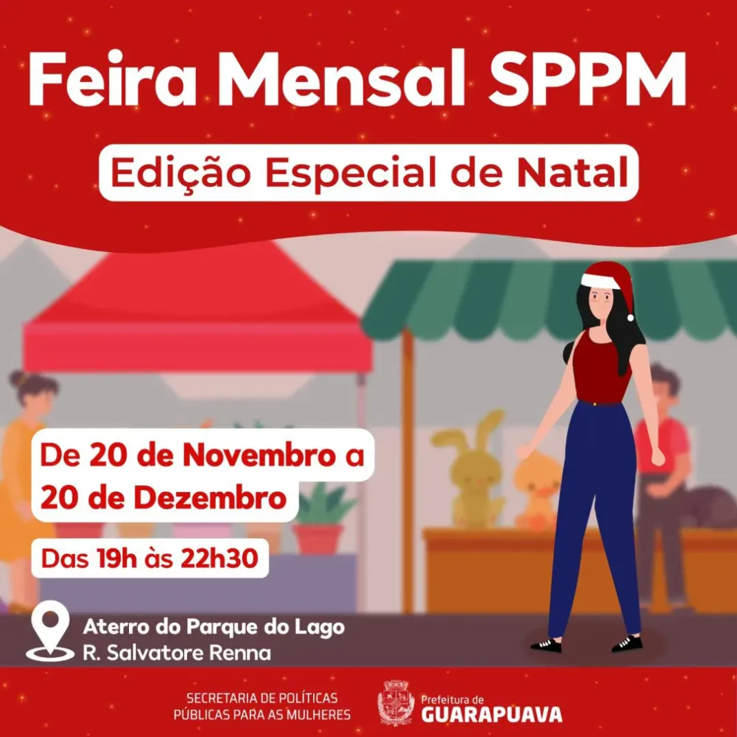 A Prefeitura de Guarapuava, por meio da Secretaria de Políticas Públicas para as Mulheres (SPPM), realiza entre os dias 20 de novembro e 20 de dezembro uma edição especial da Feira Mensal da XV, desta vez em alusão ao Natal. A feira faz parte da programação do Natal Encantado da cidade.
