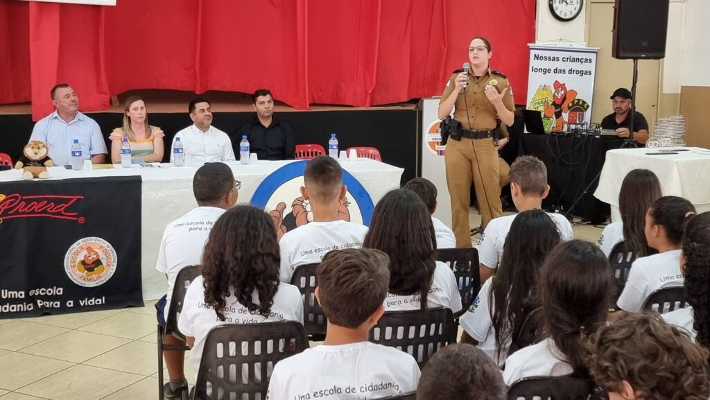 Mais 170 alunos dos 5º anos do ensino fundamental das escolas da rede municipal e particulares de Assaí participaram da solenidade de formatura do Programa Educacional de Resistência às Drogas e à Violência – PROERD.
