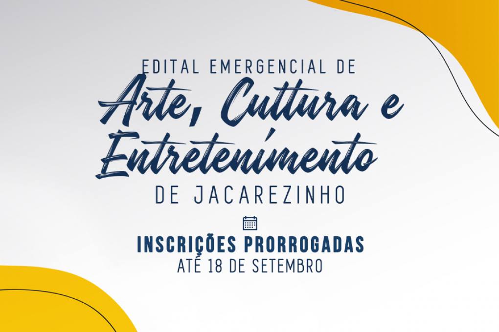 Foram prorrogadas as inscrições para o edital emergencial de arte, cultura e entretenimento, publicado pela prefeitura de Jacarezinho até a próxima sexta-feira, dia 18 de setembro. Através da Secretaria Municipal de Educação, Cultura e Esportes por meio do Departamento de Cultura, com o apoio da Universidade Estadual do Norte do Paraná (UENP), a Prefeitura de Jacarezinho divulgou edital para assegurar a manutenção da Arte, Cultura e Entretenimento e fomentar a economia aos artistas e profissionais envolvidos na área produtiva da Cultura local. As inscrições vão até às 17h, pelo site www.culturajacarezinho.com.br.