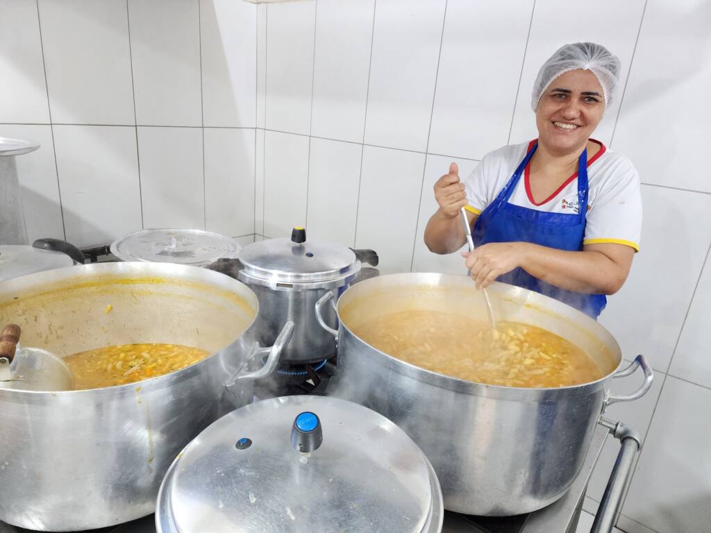 Nesta segunda-feira (07) nas escolas de período parcial foi servido uma saborosa sopa de macarrão com batata, abobrinha, cenoura e carne bovina. Nas escolas integrais: arroz, feijão, carne bovina com cenoura e salada de alface.