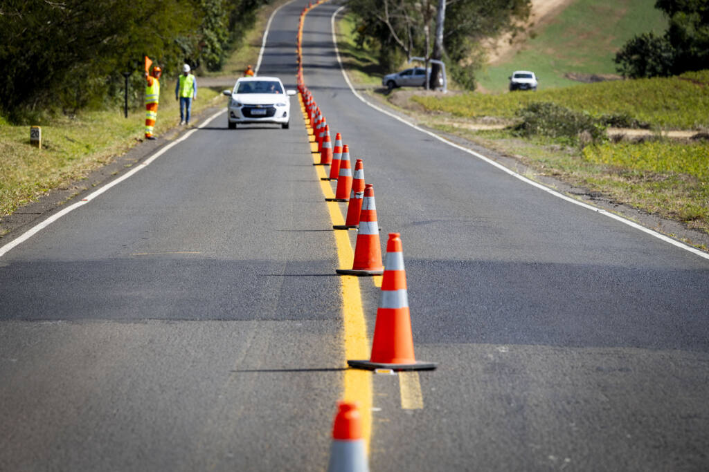 O DER/PR atendeu a PR-435 com seu Programa de Segurança Viária, que reforça sinalização horizontal, sinalização vertical e instala dispositivos auxiliares de segurança, como tachões.