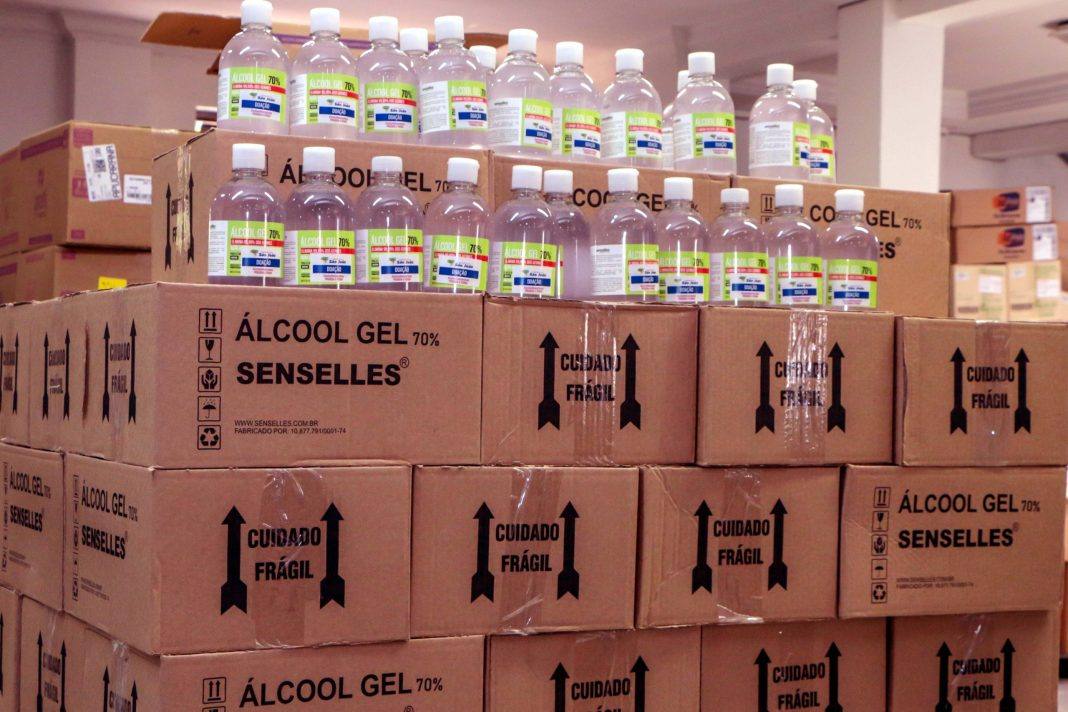 A saúde pública de Apucarana ganhou nesta última quarta-feira (8) um reforço no enfrentamento ao Covid-19, com a doação de mil frascos de álcool em gel, de 400 ml, por parte da Farmácia São João. O material foi entregue na manhã desta quarta-feira na Central de Abastecimento Farmacêutico da Autarquia Municipal de Saúde.