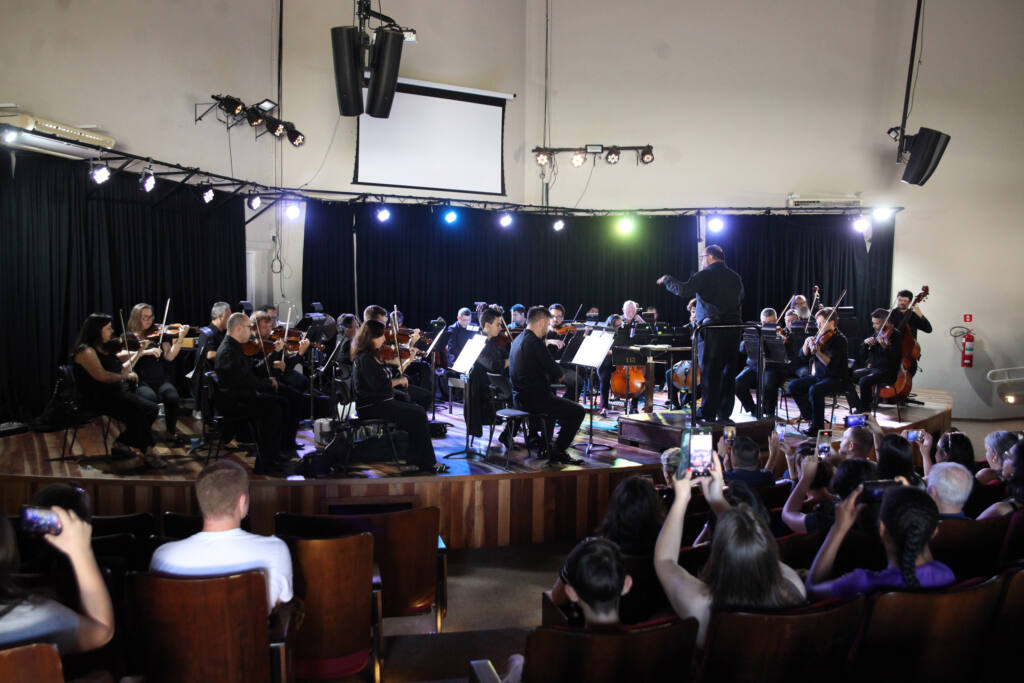 A Orquestra Sinfônica do Paraná (OSP) iniciou nesta semana a temporada de 2025 do Guaíra para Todos, um programa que leva os corpos artísticos do Teatro Guaíra até escolas, praças e teatros dos municípios paranaenses. A estreia aconteceu na manhã desta quarta-feira (26), na Usina da Música, em São José dos Pinhais, na Região Metropolitana de Curitiba, com um concerto didático regido pelo maestro convidado Alexandre Brasolim, que reuniu cerca de 100 crianças e adultos.