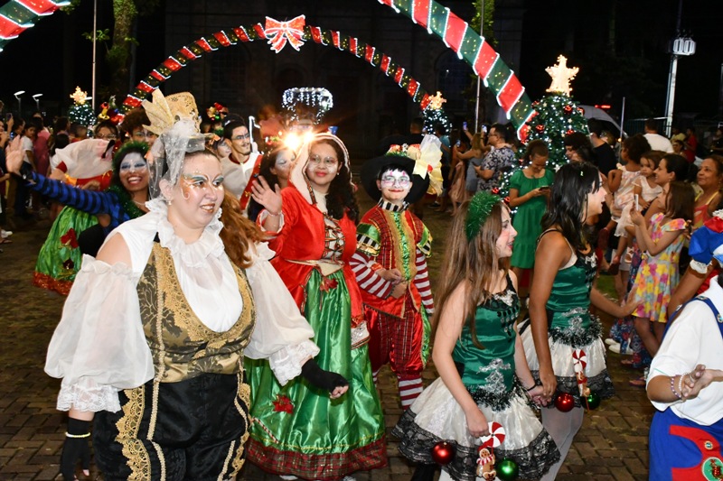 A Praça Pio XII foi palco de momentos inesquecíveis neste final de semana, com a abertura do Natal de Paz e Luz 2024. No sábado (30), a chegada do Papai Noel foi marcada pelo acendimento das luzes da decoração natalina, um belo musical de natal e um cortejo, com a participação de instrutores e alunos de canto coral infantil e adulto, ballet e teatro, do Centro de Formação em Arte e Cultura (Cefac), da Secretaria Municipal de Cultura e Turismo (SMCT), e encerramento em grade estilo, com show da Oppera Big Brass Band, de Londrina.