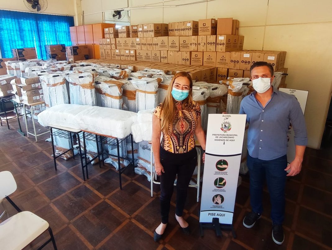 Todo o material será destinado às escolas municipais quando houver o retorno das atividades presenciais. Vale lembrar que nesta semana o município também recebeu a doação de 300 litros de álcool em gel, vindos do Instituto Federal do Paraná de Jacarezinho e igualmente destinado às escolas municipais. Fonte: Comunicação / Foto: Divulgação PMJ.