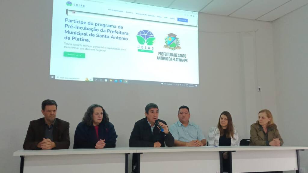Foi lançado nesta semana o programa de pré-incubação de empresas em Santo Antônio da Platina, o “Jóias do Agronegócio”. O programa abre oportunidade para empreendedores do ramo do agronegócio se inscrever e usufruir de toda estrutura física qualificada no CDTI ( Centro de Inovação e Tecnologia) e contar com a expertise das parcerias recebendo apoio gerencial e técnico de especialistas do Sebrae e o sistema “S”, o SRI Norte Pioneiro, instituições de ensino superior e técnico, órgãos do governo do estado, empresas, associações, bancos e cooperativas de crédito, entre outros.