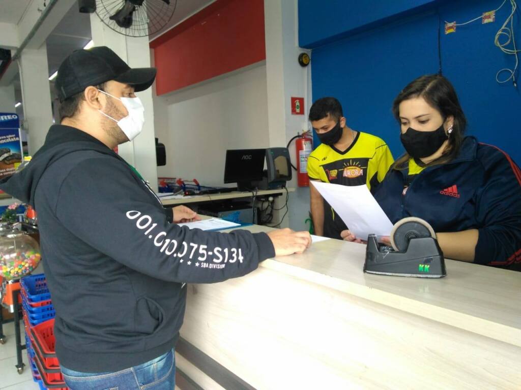 Equipes estiveram nos mercados passando as orientações e dando maiores detalhes sobre a importância desses cuidados para a saúde de clientes e também de funcionários. Fonte: Assessoria / Foto: Divulgação PMWB.