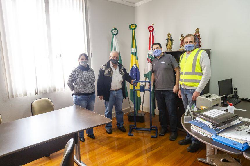 O suporte é produzido com tubos de PVC e libera o produto quando acionado com os pés. A doação dos equipamentos pretende auxiliar profissionais de serviços essenciais da cidade, além de médicos e enfermeiros que estão atuando na linha de frente no combate à Covid-19, evitando o contato direto das pessoas com o reservatório de álcool gel durante a higienização das mãos.