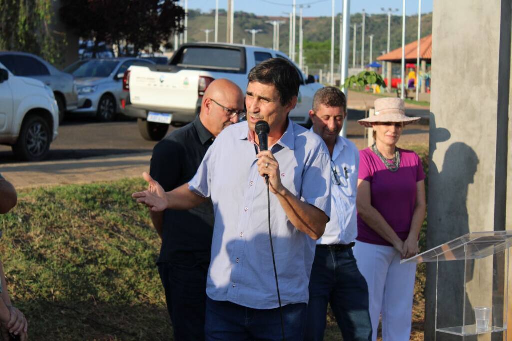 “É impossível nominar quantas pessoas teríamos que agradecer por terem contribuído para a inauguração deste parque hoje. Começamos a investir no lazer com a instalação de pequenos parques infantis no centro da cidade que fizeram muito sucesso e diante disso então identificamos a necessidade de um espaço maior como o parque urbano, além de outros espaços já distribuídos pela cidade. É uma satisfação ver o nosso trabalho trazendo frutos para a sociedade”, discursou o prefeito José da Silva Coelho Neto, o professor Zezão.