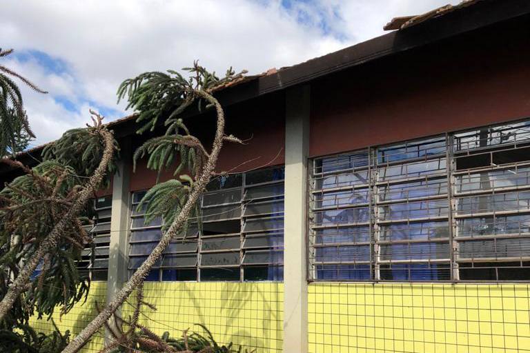 Em geral, os principais danos foram nos telhados e nos vidros das janelas das escolas.