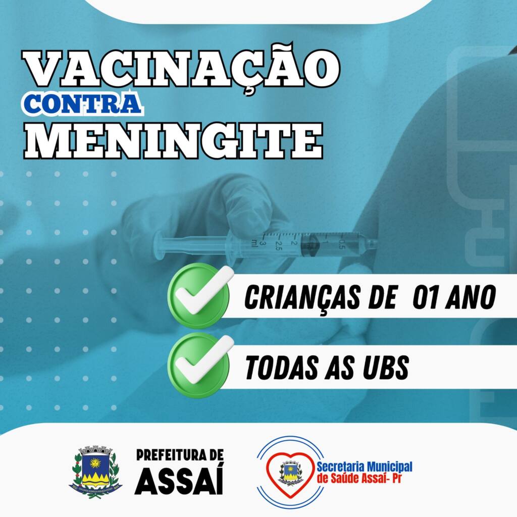 A Secretaria de Saúde anuncia que está disponível em todas as UBS o reforço da vacina contra meningite para as crianças de 01 ano de idade, com a vacina ACWY, uma proteção mais completa que amplia a defesa dos pequenos contra formas graves da doença.