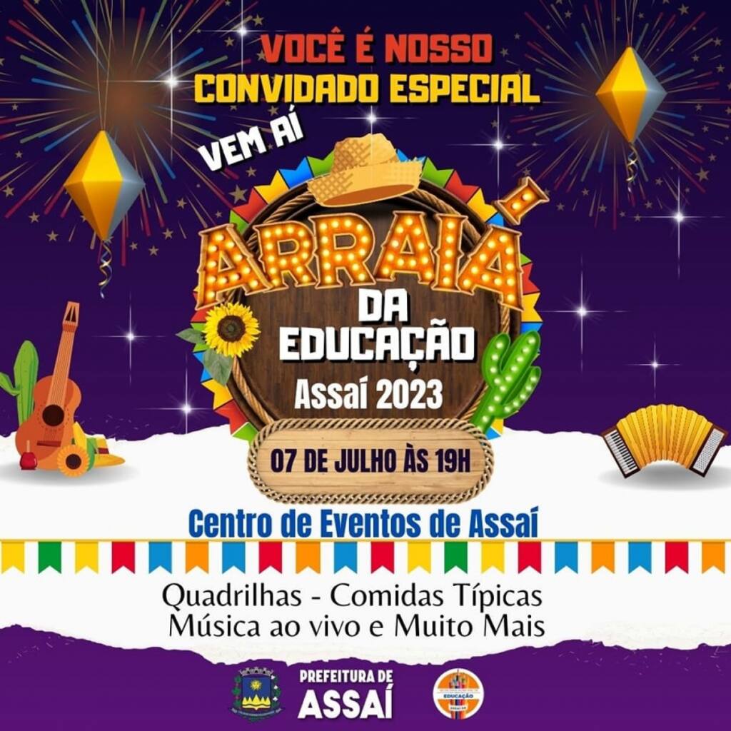 O Governo Municipal de Assaí através da Secretaria de Educação vai promover um super evento para toda a comunidade : o Arraiá da Educação 2023.