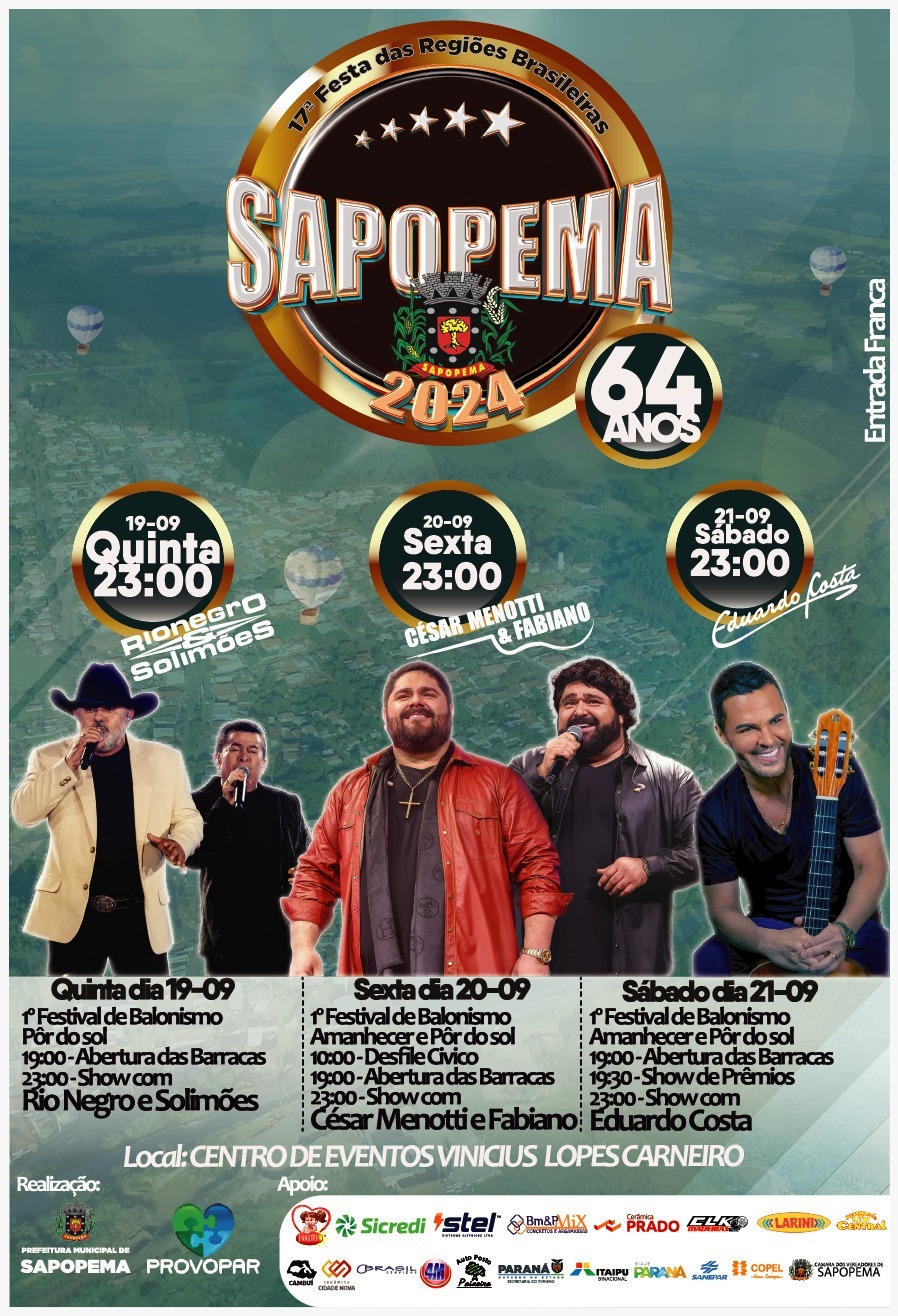 De 19 a 22 de setembro, Sapopema vai parar parar. Confira a programação.